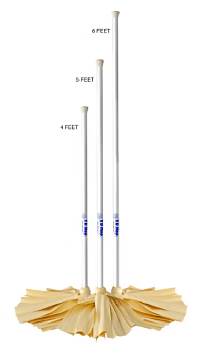 The classic 6' TD Mop™ Double White Deluxe has superior absorption power thanks to durable wide chamois flaps. 2x the material of single mops. It features a permanent 6' white wooden handle that is long enough to reach more areas.